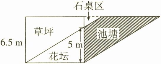 5. 下面是公园一角的示意图,已知花坛的面积为 $20$ 平方米,池塘的面积是多少平方米?(6 分)