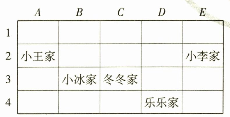 (1) 如果用(E,2)表示小李家的位置,那么小王家的位置是(