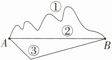 3. 如图,从 $ A $ 到 $ B $ 有三条路可走,小华从 $ A $ 到 $ B $ 走(