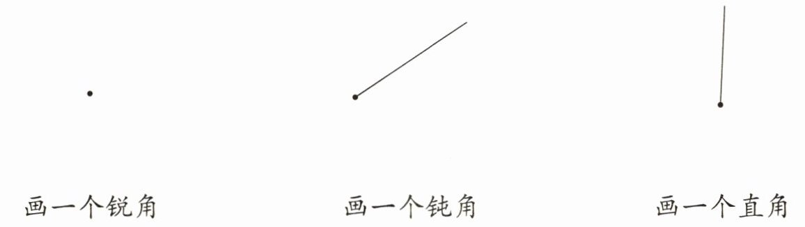 三、用下面给出的点和线画一个锐角、一个钝角和一个直角。