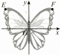 5. (3 分)如图,蝴蝶剪纸是一幅轴对称图形,将其放在平面直角坐标系中,若图中点 $ E $ 的坐标为 $ (m,3) $,其关于 $ y $ 轴对称的点 $ F $ 的坐标为 $ (5,n) $,则 $ m+n $ 的值为 (