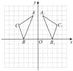 (1)在图中作出与 $ \triangle ABC $ 关于 $ y $ 轴对称的图形 $ \triangle A_1B_1C_1 $;