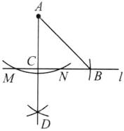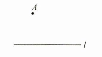 7.(8分)(2024·陕西)如图,已知直线$l和l外一点A$,请用尺规作图法,求作一个等腰直角三角形$ABC$,使得顶点$B和顶点C都在直线l$上.(作出符合题意的一个等腰直角三角形即可,保留作图痕迹,不写作法)