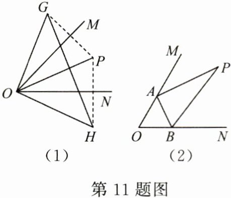 11. (17 分) 已知点 $ P $ 在 $ ∠MON $ 内.