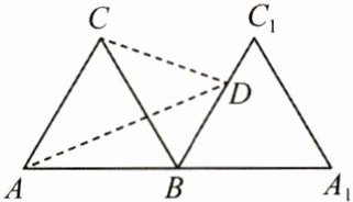 9. (3 分) 如图, 等边三角形 $ ABC $ 的边长为 3, $ A, B, A_1 $ 三点在一条直线上, 且 $ △ABC ≌ △A_1BC_1 $. 若 $ D $ 为线段 $ BC_1 $ 上一动点, 则 $ AD + CD $ 的最小值是 .