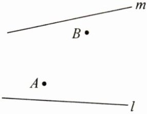 解:如图,分别作点 A 关于直线 l 的对称点 A',点 B 关于直线 m 的对称点 B',连接 A'B',分别交 l 于点 P,交 m 于点 Q,连接 AP,BQ,此时路程 AP+PQ+BQ 最短.