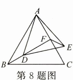8. (3 分) 如图, 在等边三角形 $ ABC $ 中, $ BF $ 是边 $ AC $ 上的中线, 点 $ D $ 在 $ BF $ 上, 连接 $ AD $, 在 $ AD $ 的右侧作等边三角形 $ ADE $, 连接 $ EF $, 当 $ △AEF $ 的周长最小时, $ ∠FAE $ 的度数是 ( )
