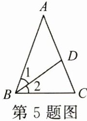 5.(3 分)如图,若$BD是\triangle ABC$的角平分线,则$\angle 1= \angle$