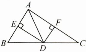 12.(10 分)如图,在$\triangle ABC$中,$AD$为中线,$DE和DF分别为\triangle ADB和\triangle ADC$的高.若$AB= 3$,$AC= 4$,$DF= 1.5$,求$DE$的长.