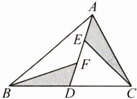 10.(3 分)如图,$\triangle ABC$的面积为 18,$AD为\triangle ABC$的中线,$E$,$F为AD$的两个三等分点,连接$CE$,$BF$,则图中阴影部分的面积和为______