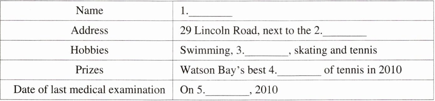 | Hobbies | Swimming, 3.______, skating and tennis |