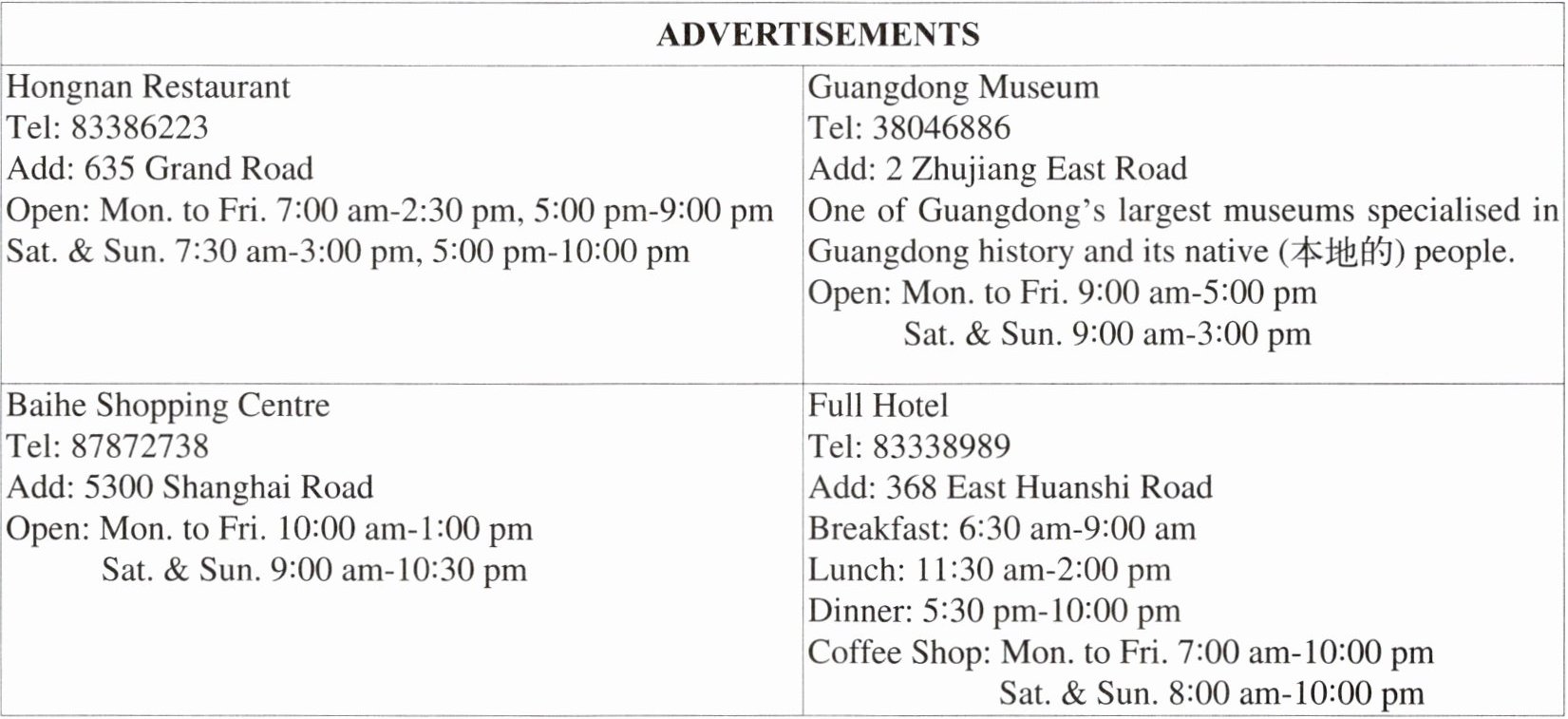 ( ) 5. You can know the history of ______ when you visit Guangdong Museum.