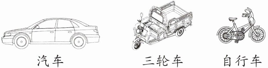 2. 6辆三轮车和1辆汽车一共有多少个轮子?