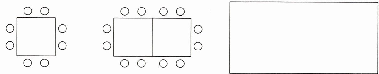 八、一张桌子可以坐 8 人(如图),把 2 张桌子拼起来,可以坐( )人。3 张桌子拼起来可以坐( )人。请你画一画,算一算。