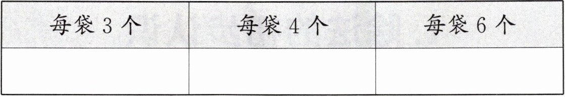 四、蛋糕店烤了 12 个,要用不同的包装袋进行包装(如下表)。按要求画一画。(可用○代替)