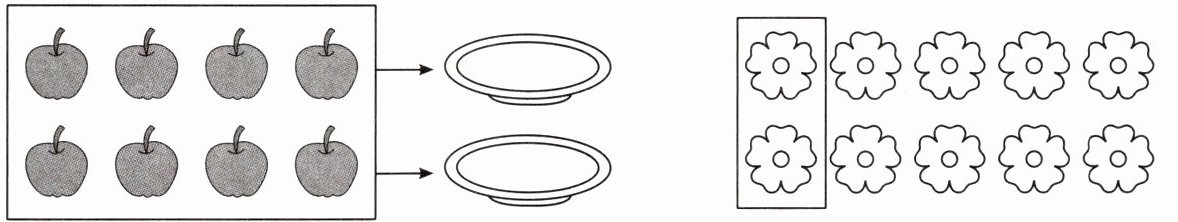 三、根据图片信息选择一句乘法口诀,写出乘、除法算式,并用它们编一组数学小故事。