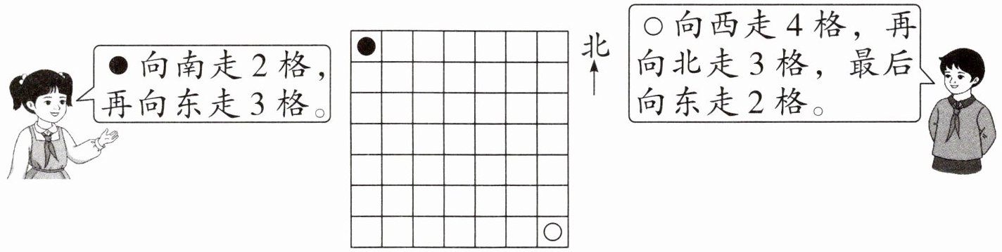 ○ 向西走 4 格,再向北走 3 格,最后向东走 2 格。