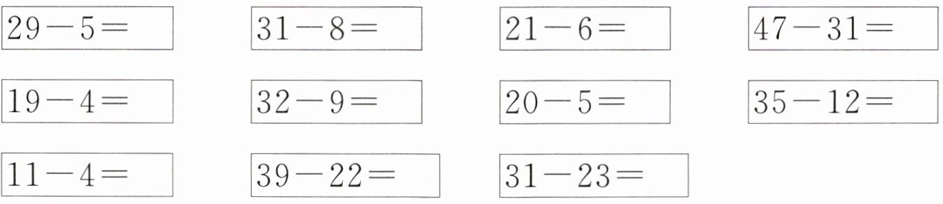 |29 - 5 = |31 - 8 = |21 - 6 = |47 - 31 = |