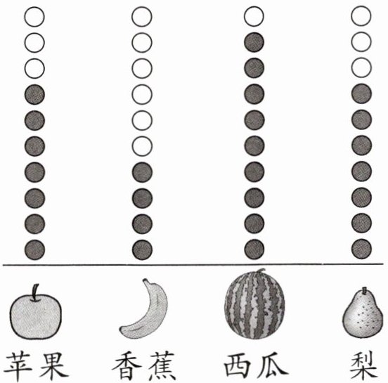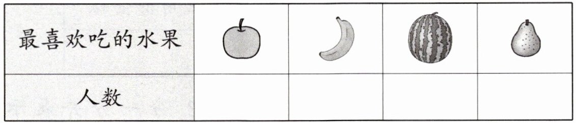 一、调查二(1)班同学最喜欢吃的水果,结果如下(每个●代表1名同学)。