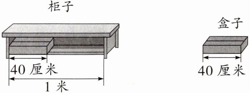 七、已知柜子里只能摆放一层图中的盒子,按图中的方式摆放,柜子里最多可以放( )个这样的盒子,还剩下( )厘米的空隙。