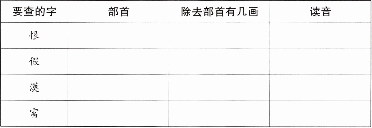 2. 用部首查字法查查下面的字,把表格补充完整。