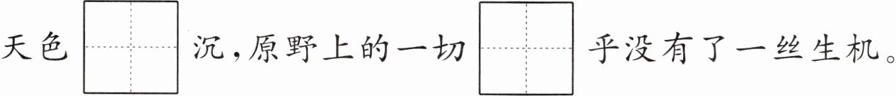 $\underset{\cdot}{}$(mán máng)。天色$\begin{array}{|c|c|}\hline & \\\hline & \\\hline\end{array}$\begin{array}{|c|c|}\hline & \\\hline & \\\hline $yīn沉,原野上的一切$\begin{array}{|c|c|}\hline & \\\hline & \\\hline\end{array}$\begin{array}{|c|c|}\hline & \\\hline & \\\hline $sì乎没有了一丝生机。1. 给加点字选择正确的读音,画“√”。