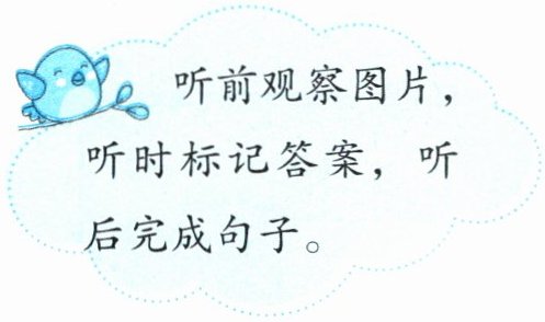 听录音,在方框内勾选出与指路方式对应的图片,并将正确短语或句子的字母序号写在横线上。