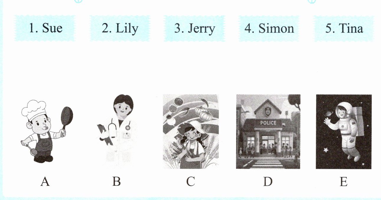 听录音,判断图片与对话内容是否相符,相符的在“☆”内写“T”,不相符的写“F”。