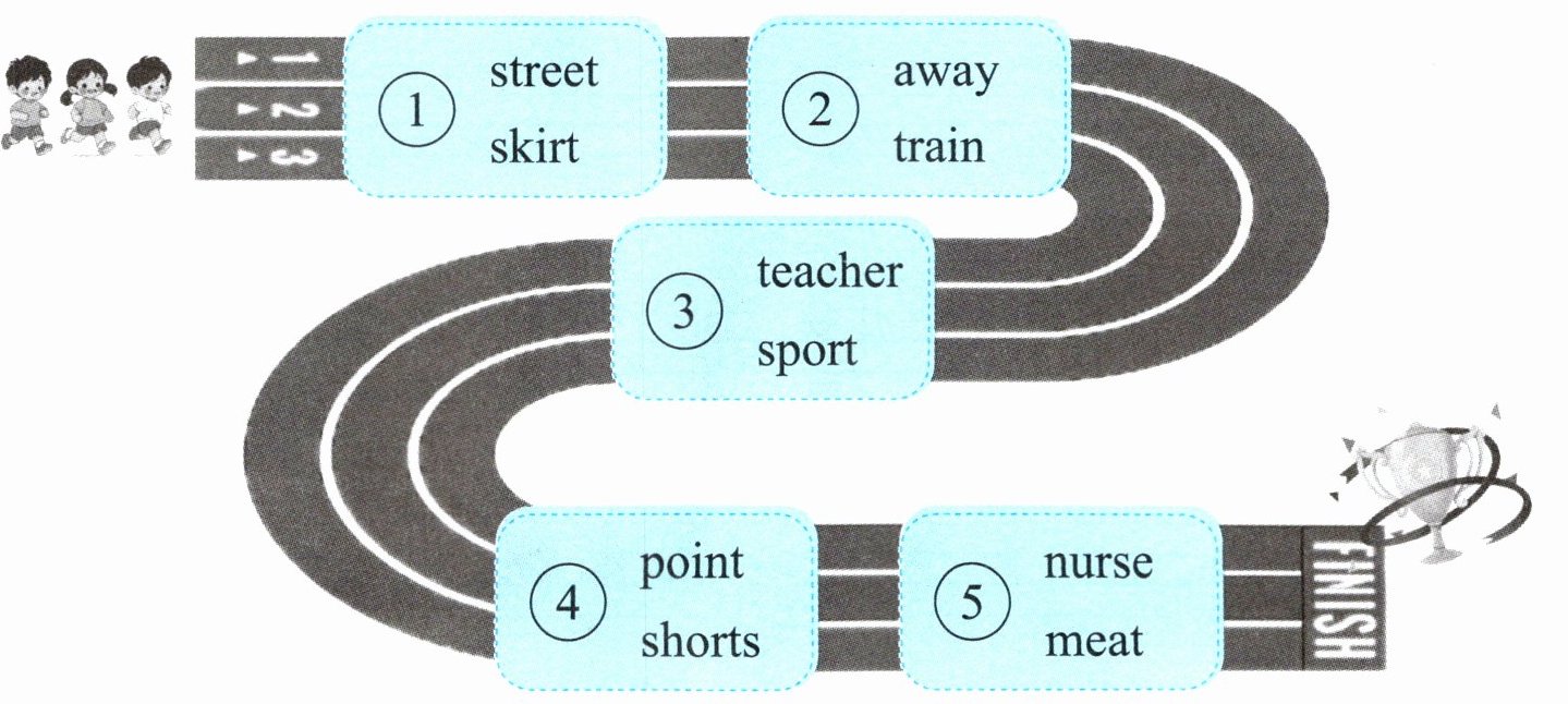 听录音,依次圈出与所听单词含有相同发音的单词。