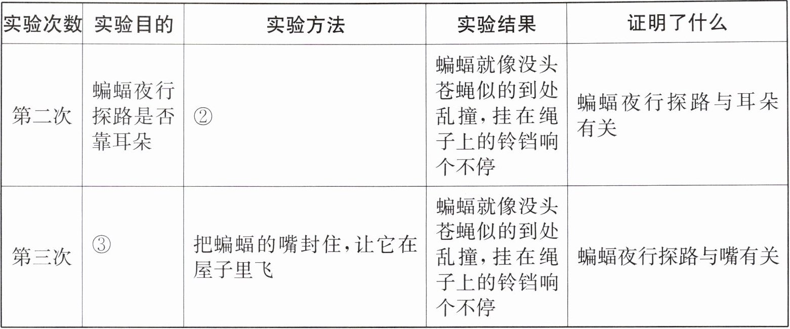 3. 实验结果证明了蝙蝠夜里飞行,靠的不是眼睛,而是用嘴和耳朵配合起来探路的。