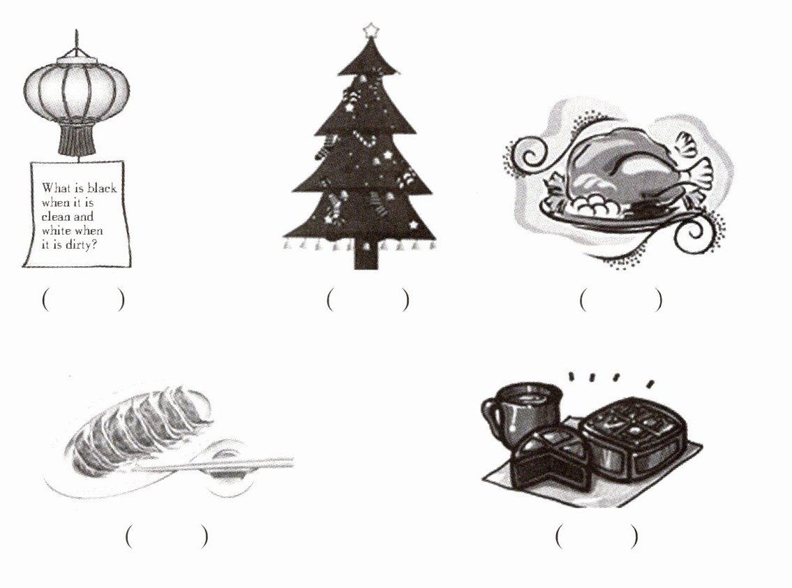 听录音,根据录音在图片下括号里写上相应的数字序号。