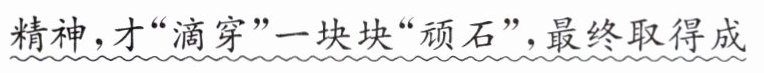 你看,古今中外所有成就事业的人,在前进的道路上,都是靠着这种"滴水穿石"的精神,才"滴穿"一块块"顽石",最终取得成功的。