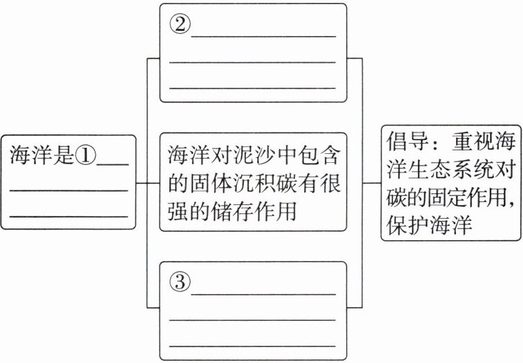 2.①一位能力出众的"捕碳者" ②海洋活动及海洋生物能够吸收大气中的二氧化碳 ③海洋生物能将无机碳转化为有机碳并沉降至深海