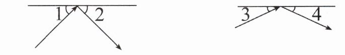 (2)发现的特点是:台球撞向桌边时的入射角(如$\angle1$、$\angle3$)和弹走时的反射角(如$\angle2$、$\angle4$)度数相等。