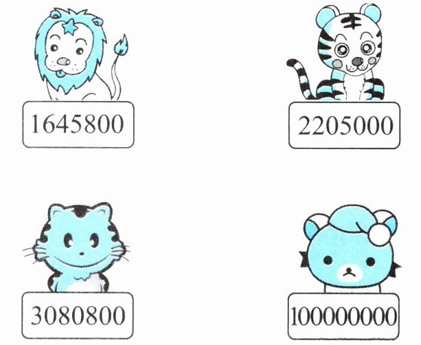 一百六十四万五千八百 二百二十万五千 三百零八万零八百 一亿