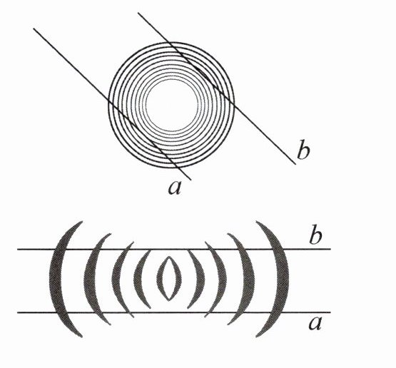 2. 观察一下,下面两组直线a、b平行吗?请你利用本课时发现的规律,动手检验一下。