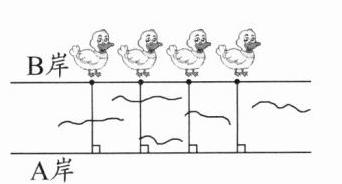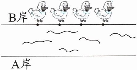2. 小河的B岸和A岸是互相平行的,一群小鸭子从B岸游到A岸。