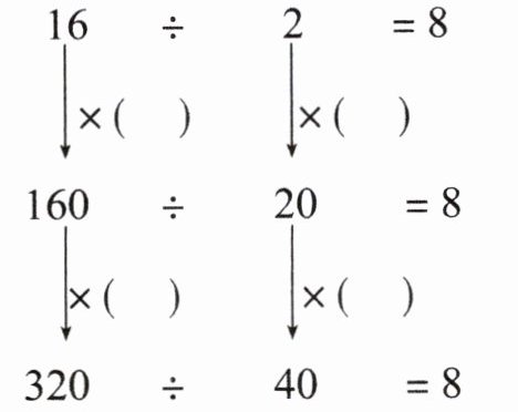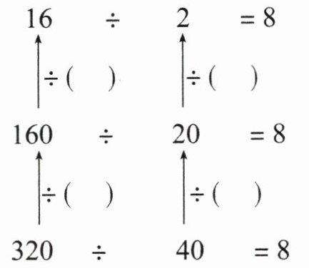 $\begin{array}{|c|}\hline16÷2= \\160÷20= \\320÷40= \\\hline\end{array}$