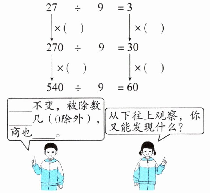 。发现:被除数不变,除数除以几(0 除外),商反而乘几。