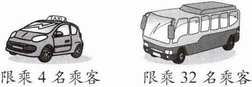 3. 五年级120人去秋游,租了3辆大客车,还需要租几辆出租车?(8分)