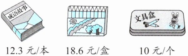 (1)用“不到”估算:1本《成语故事》不到13元,4本不到52元,1盒水彩笔不到19元,2盒不到38元;再买1个10元的文具盒,总共不超过