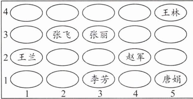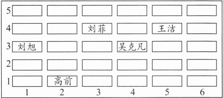 列数 行数 (列数,行数)刘旭(1,3) 吴克凡(4,3) 王洁(5,4) 高前(2,1) 列数 行数