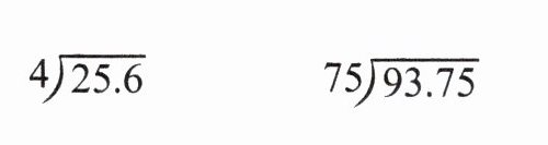 综上,$25.6÷4 = 6.4$,$93.75÷75 = 1.25$。