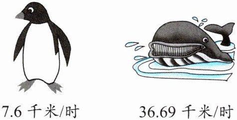 (1)鲸的游动速度约是企鹅的多少倍?(得数保留整数。)