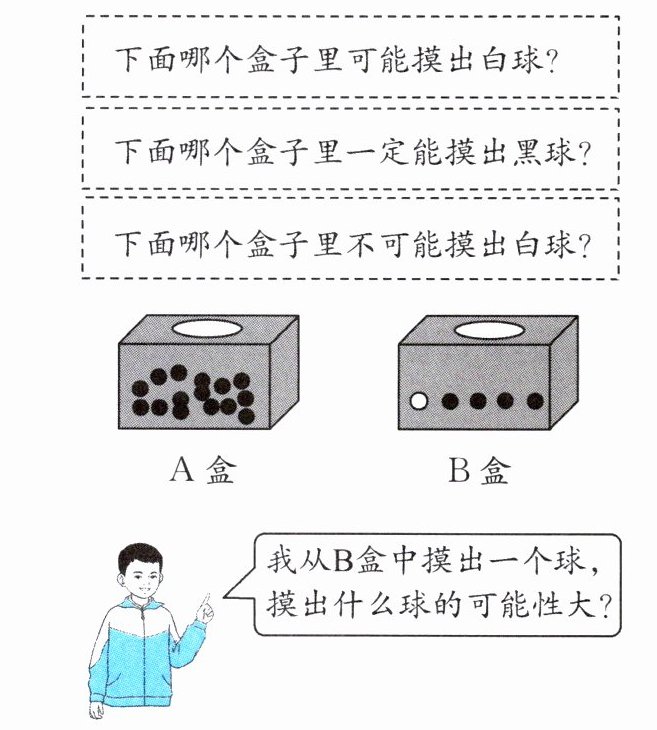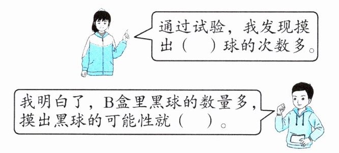 1. 我猜:A盒里一定能摸出黑球,不可能摸出白球;B盒里可能摸出白球,也可能摸出黑球。