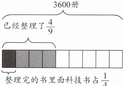 2.$\frac{4}{9}$的单位“1”是 3600 册图书,$\frac{1}{4}$的单位“1”是已经整理完的册数。