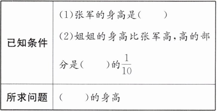 也可以先求出姐姐的身高相当于张军的几分之几。