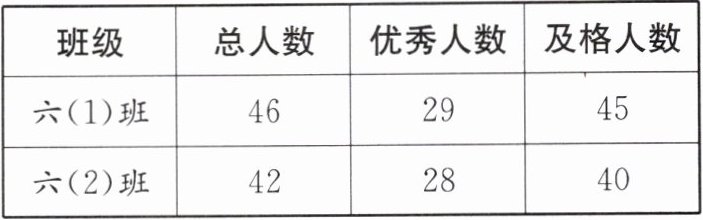 2. 希望小学六(1)班和六(2)班某次数学成绩统计如下表: