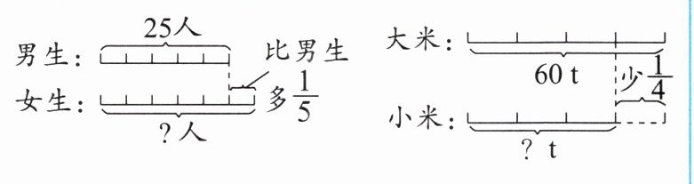 25×$(1+\frac{1}{5})$=30(人) 60×$(1-\frac{1}{4})$=45(t)