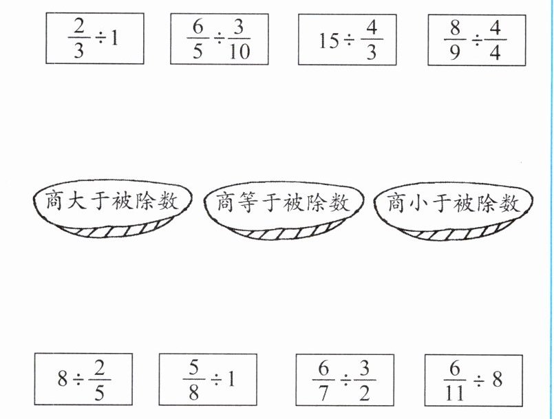 我的发现:两个不为0的数相除,如果除数小于1,那么商( )被除数;如果除数大于1,那么商( )被除数;如果除数等于1,那么商( )被除数。